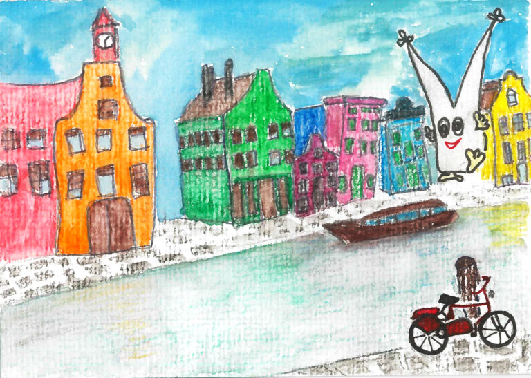 Is there any closer (in any sense!) big friend of Cologne than the Netherlands? Amstel is a renowned river, a beer make, but also a lovely quarter in Amsterdam, fascinating by its unique ‘Dancing Houses’ ensemble. Houses there lean to each other, making them look like they dance and sway. Many families in Cologne have personal family connections in Amsterdam, Utrecht, Maastricht, Rotterdam and many other lovely Dutch locations. It is a tribute to our friend and family ties with the beautiful Netherlands. So Dom also came to Amsterdam to his relatives for a dance. Blame the authors for not keeping the proportions.